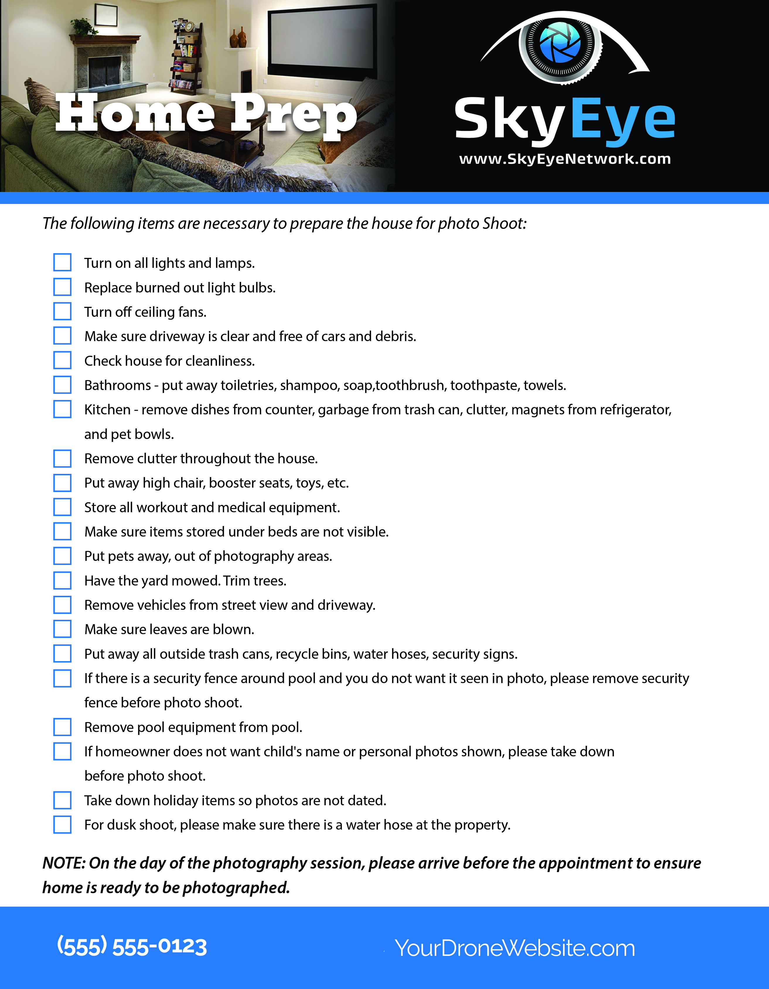 After setting an appointment with Beacon Sky Services, please review the home preparation flyer to ensure your property is ready for the photo shoot. Here you will see all those requirements for photography